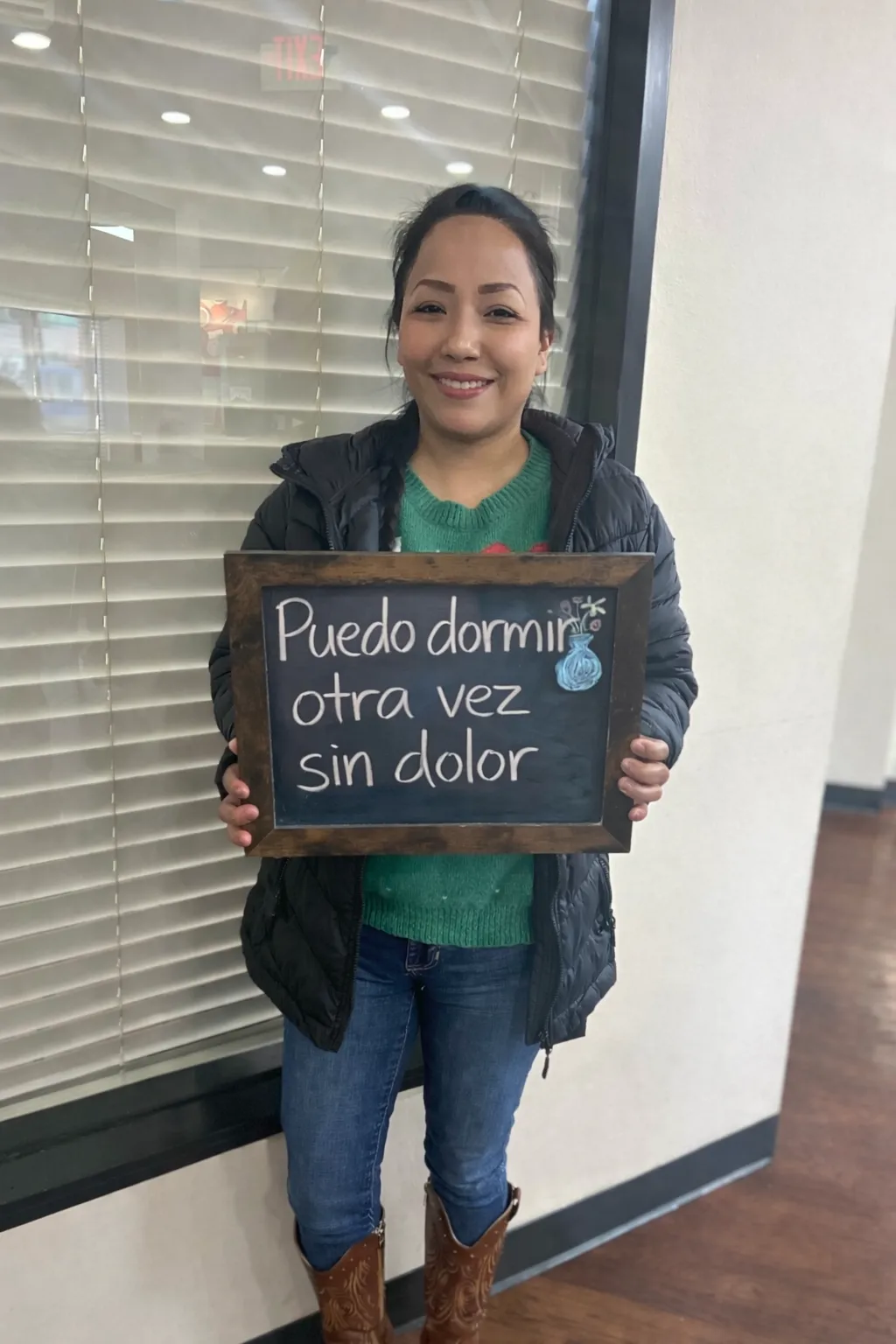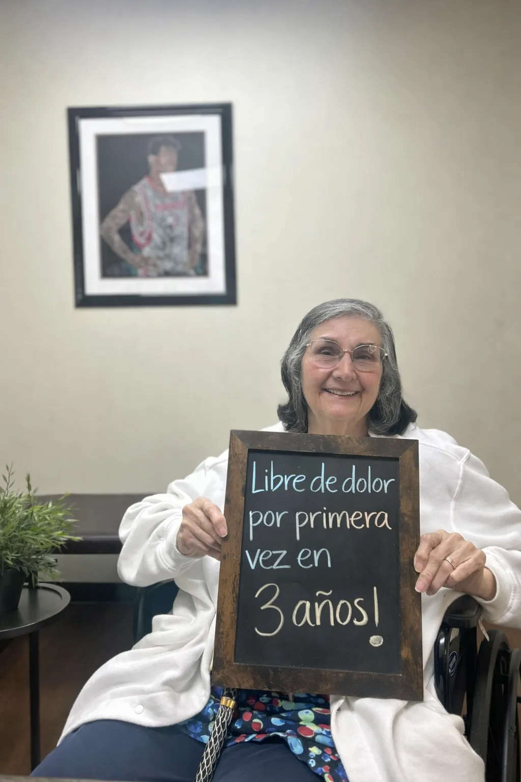 "Llegué hace unos tres meses con un dolor de rodilla terrible y ahora estoy un 95% mejor. ¡Me encanta este lugar! El personal es maravilloso y los médicos también. ¡Les estoy muy agradecida! ¡Por fin puedo volver a correr!"